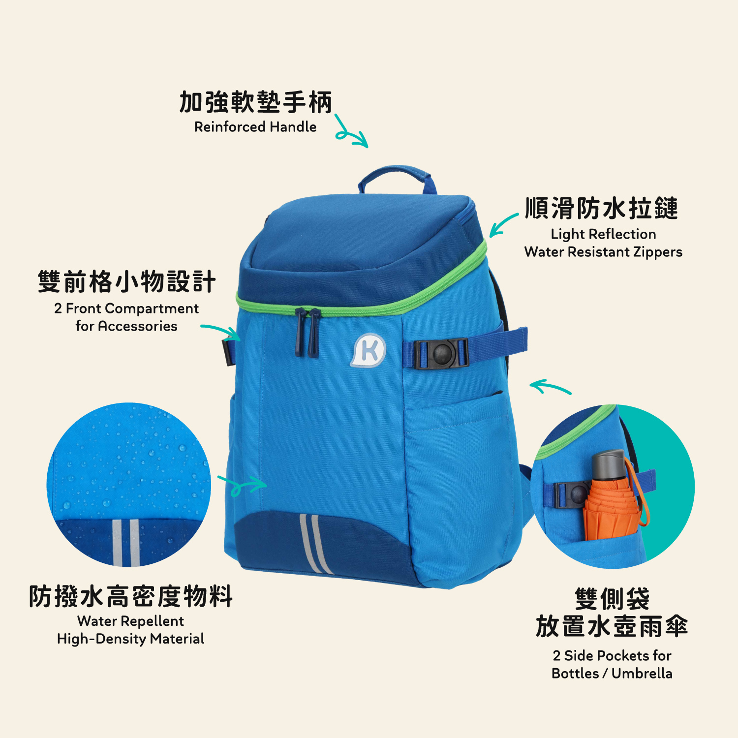 ☔ 雙側袋|輕巧單手柄
