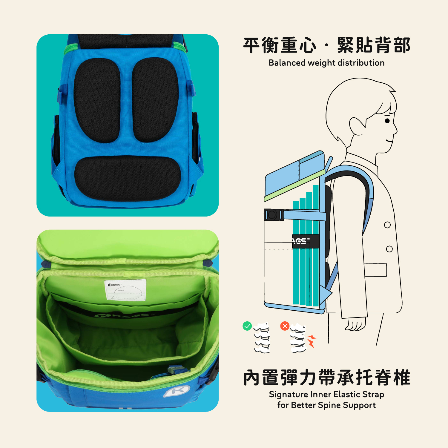 🎒 超輕0.82kg|脊椎保護|內置彈力帶