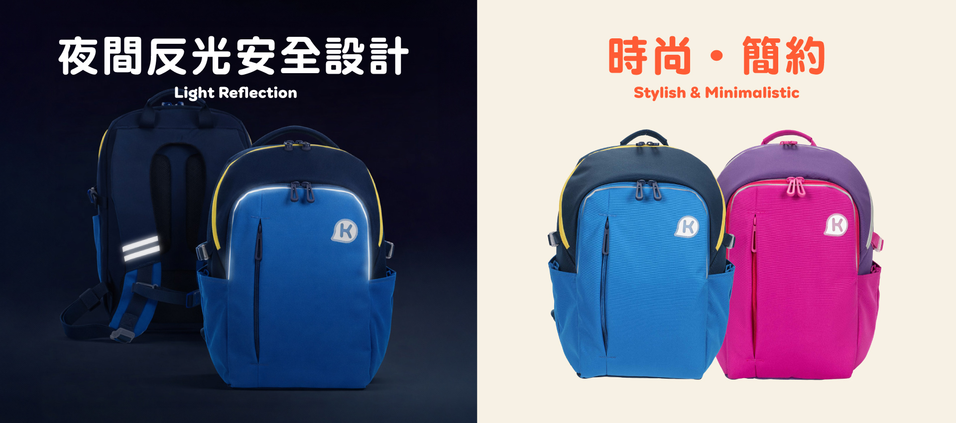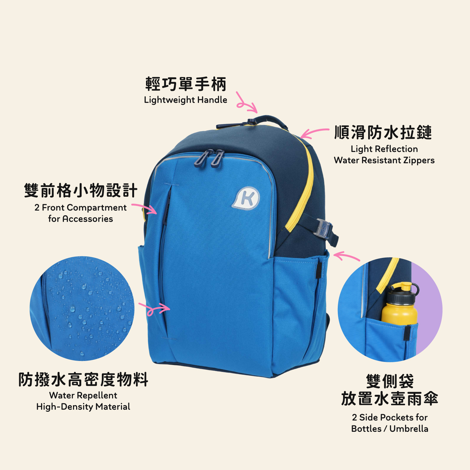 💧 防撥水 + 反光防水拉鍊